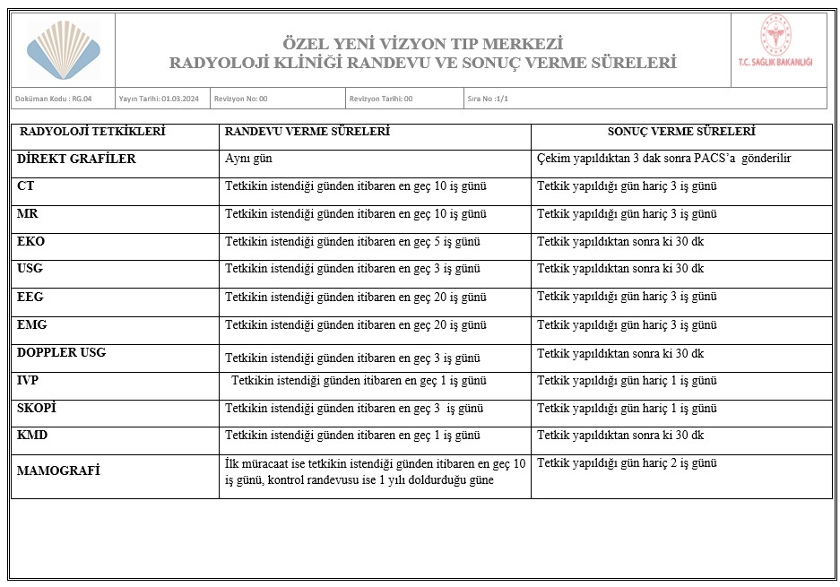 Yeni Vizyon Tıp Merkezi Olarak;
